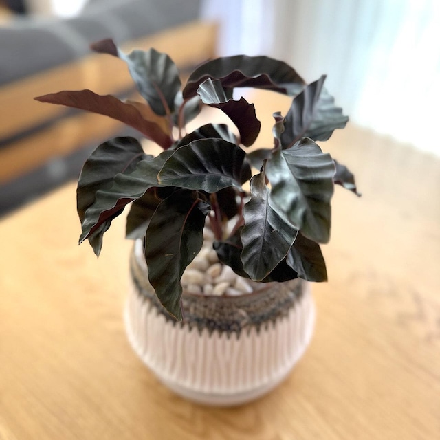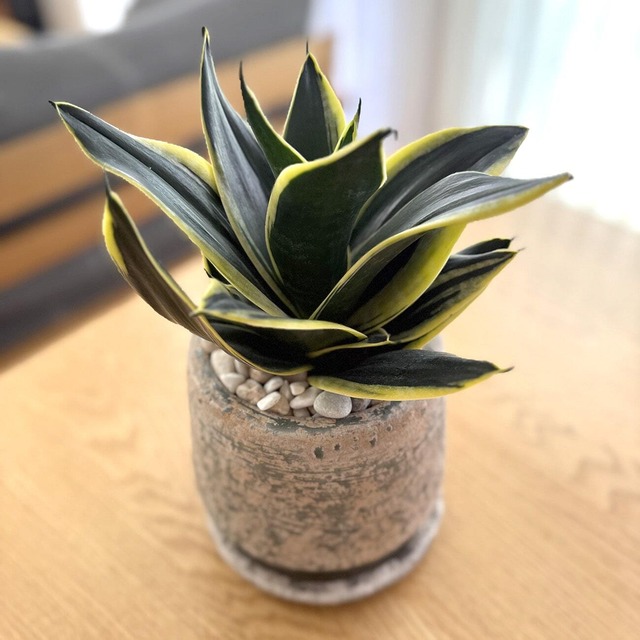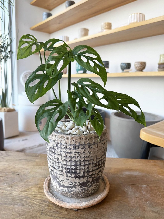 おすすめは、ナチュラルな鉢や木製の棚と合わせること。インテリアとしても存在感があり、どんな部屋にも自然になじみます。
