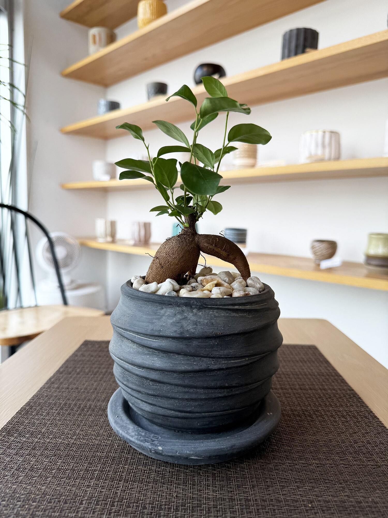 正式名称は「フィカス・マクロカルパ」ゴムの木の一種となります。目にする機会の多いガジュマルですが、幹の部分がそれぞれ異なりお気に入りの形を見つけるのも楽しいですよ。