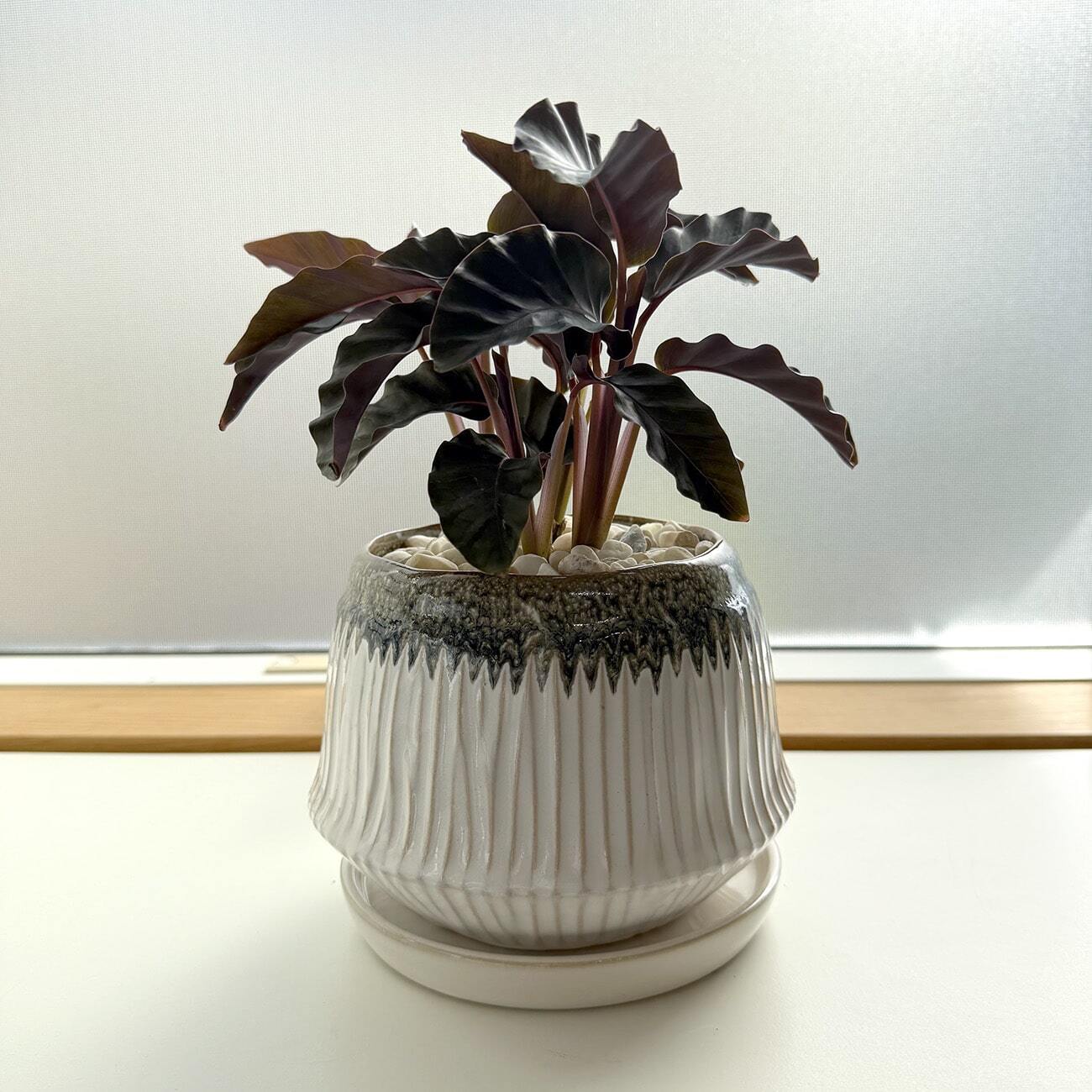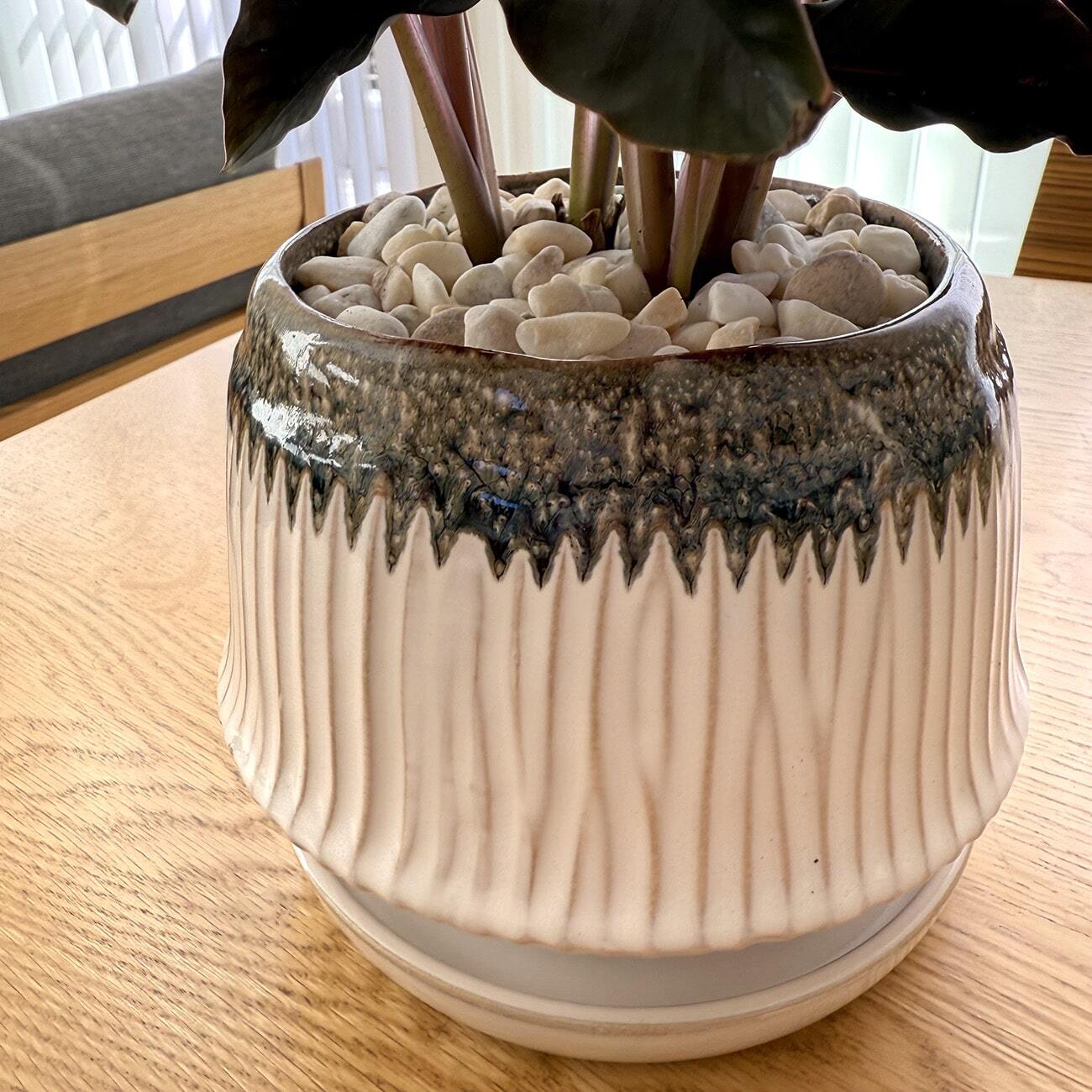 陶器の形と色味がインテリアグリーンとしてもお部屋の雰囲気を引き立てます。