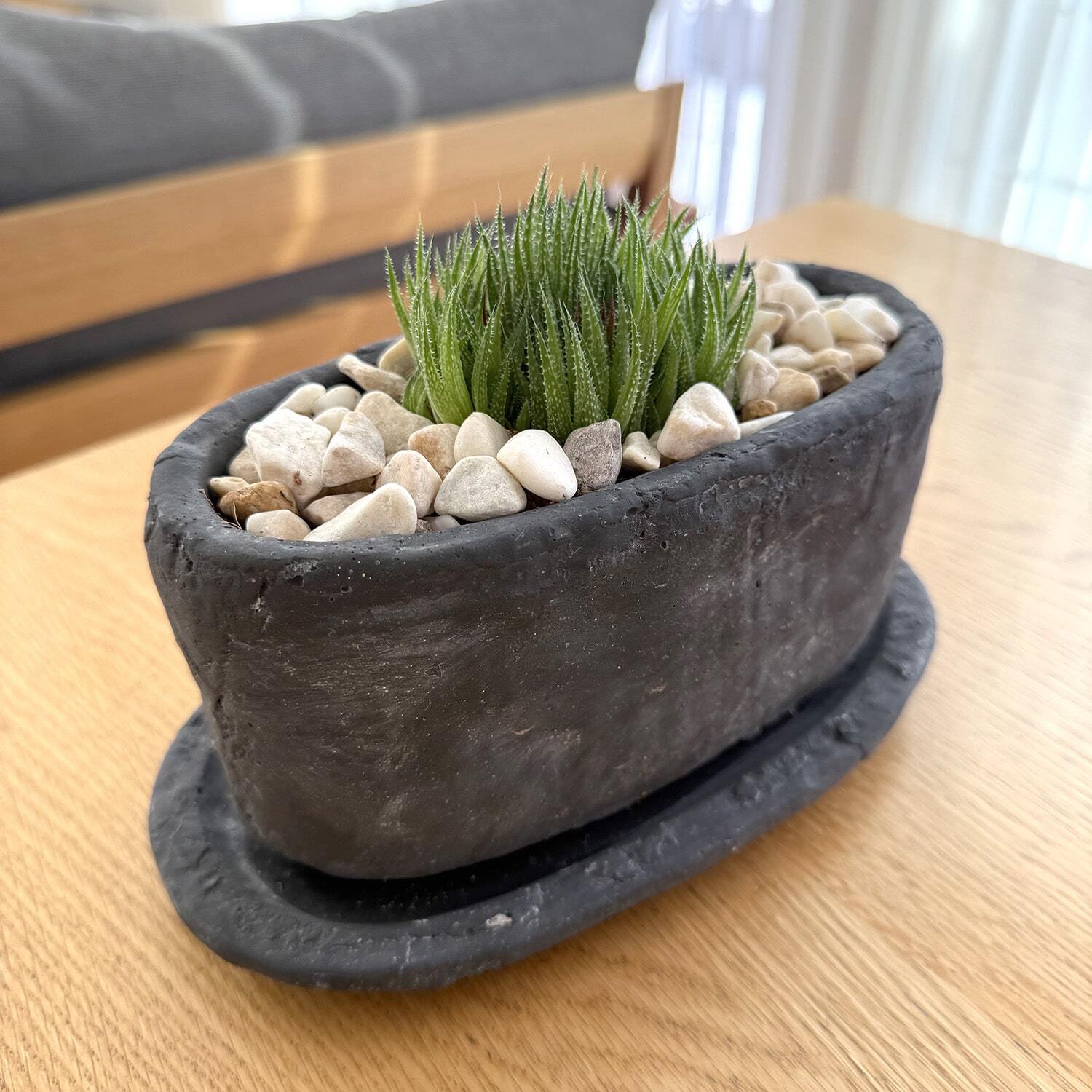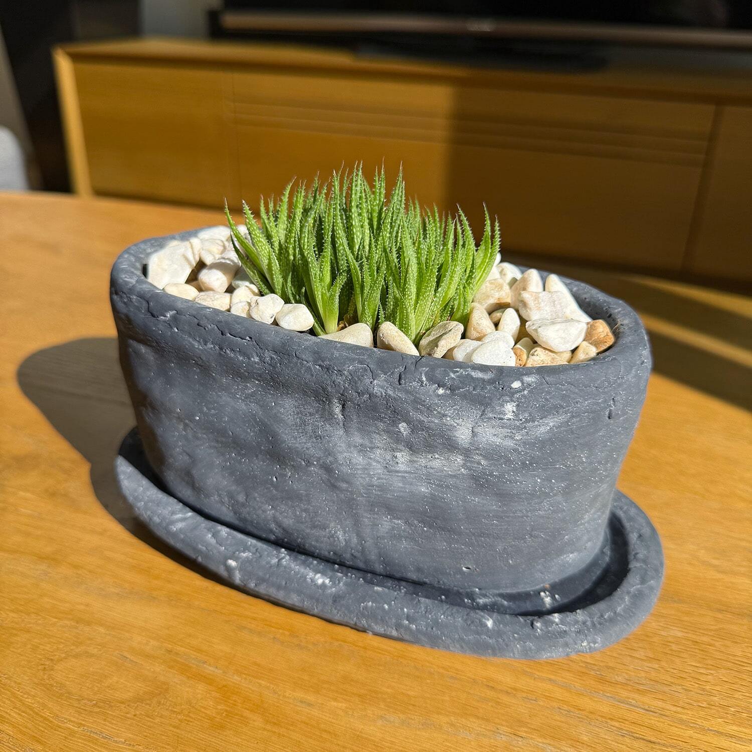 オーバル型の鉢は棚の上やテーブルの上などにも置きやすく、いつもとちょっと違う鉢を置くだけでもお部屋の雰囲気がグッと変わります。