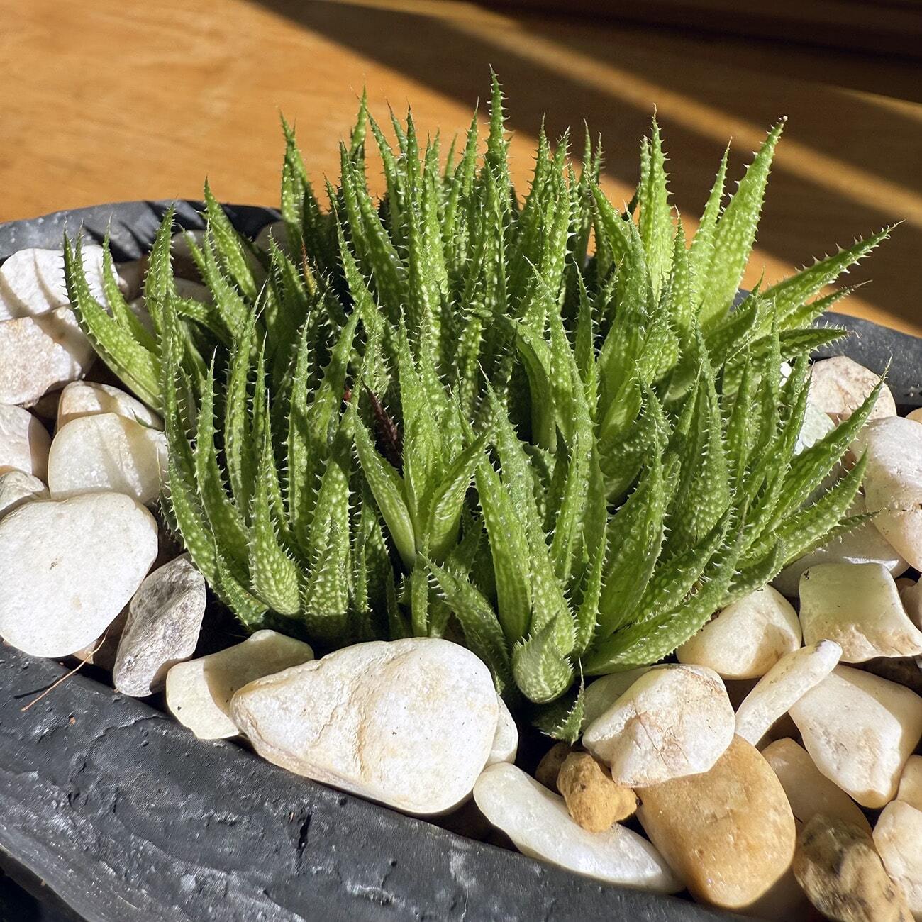 ハオルチアは大きく分けて硬葉系と軟葉系がありますが、こちらのハオルチアは硬葉タイプ。子株も沢山でているのでオーバル型の鉢との相性も良いです。年月とともにボリュームが増していきます。乾燥にも強いので、お忙しい方にもおススメな種類です。