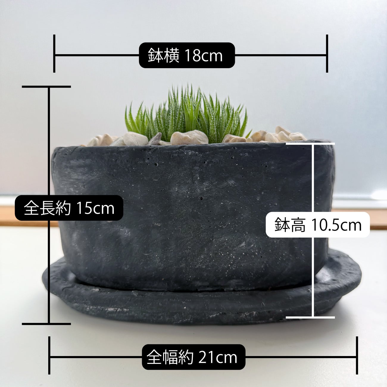 全高:約15cm、全幅:約21cm、鉢の高さ:10.5cm、鉢の幅:18cm
