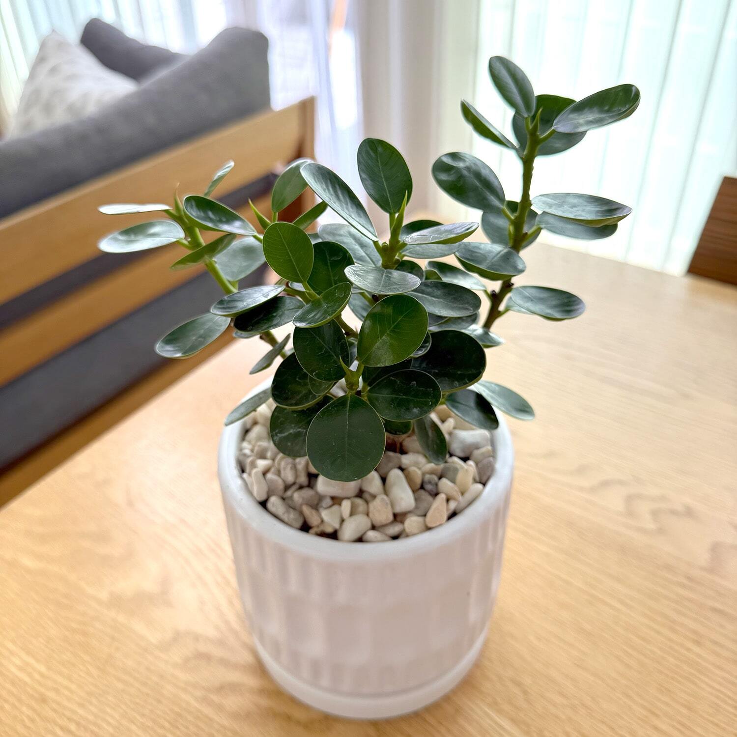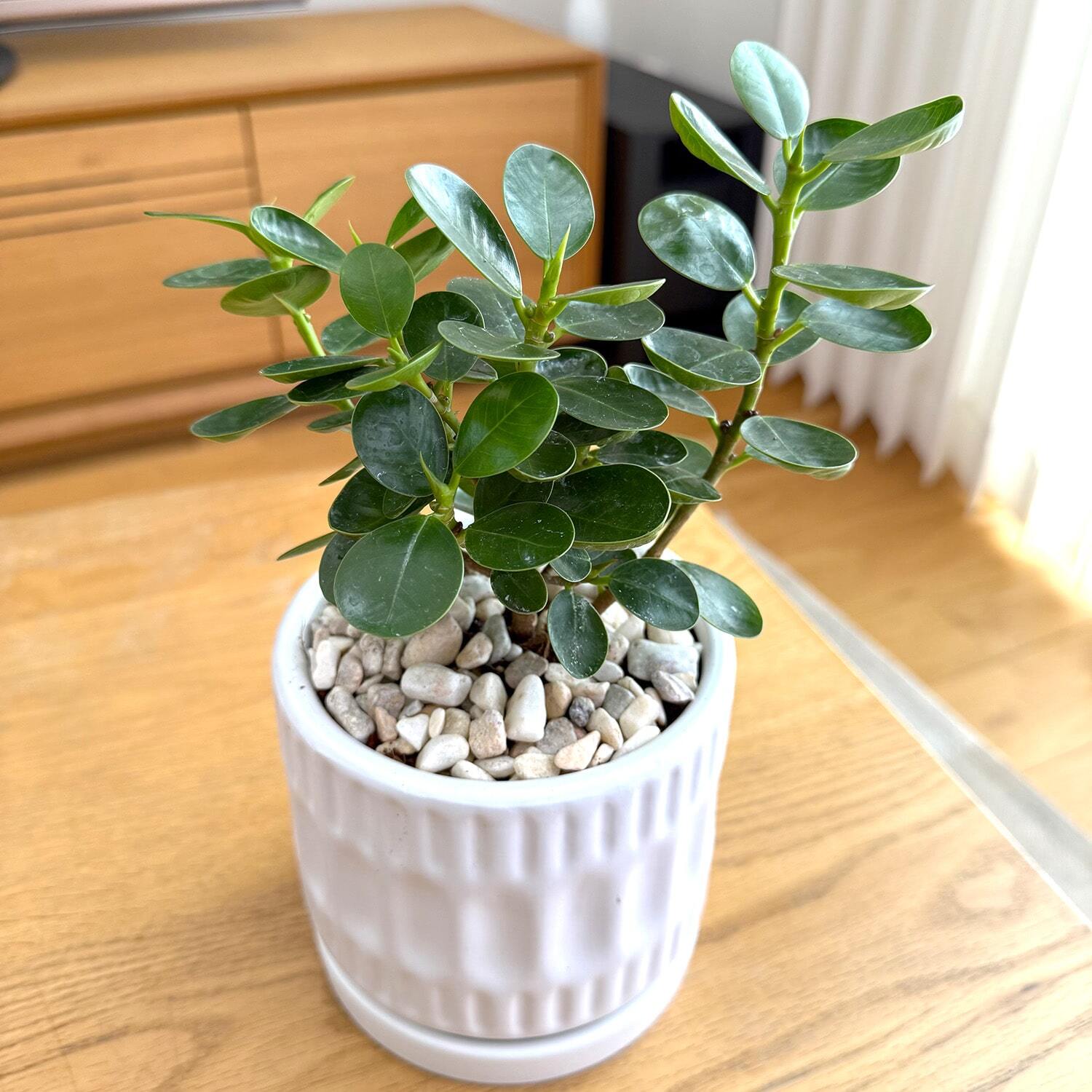 その分、丸い葉が可愛らしさたっぷりで、ガジュマルに並んで人気なグリーンになります。