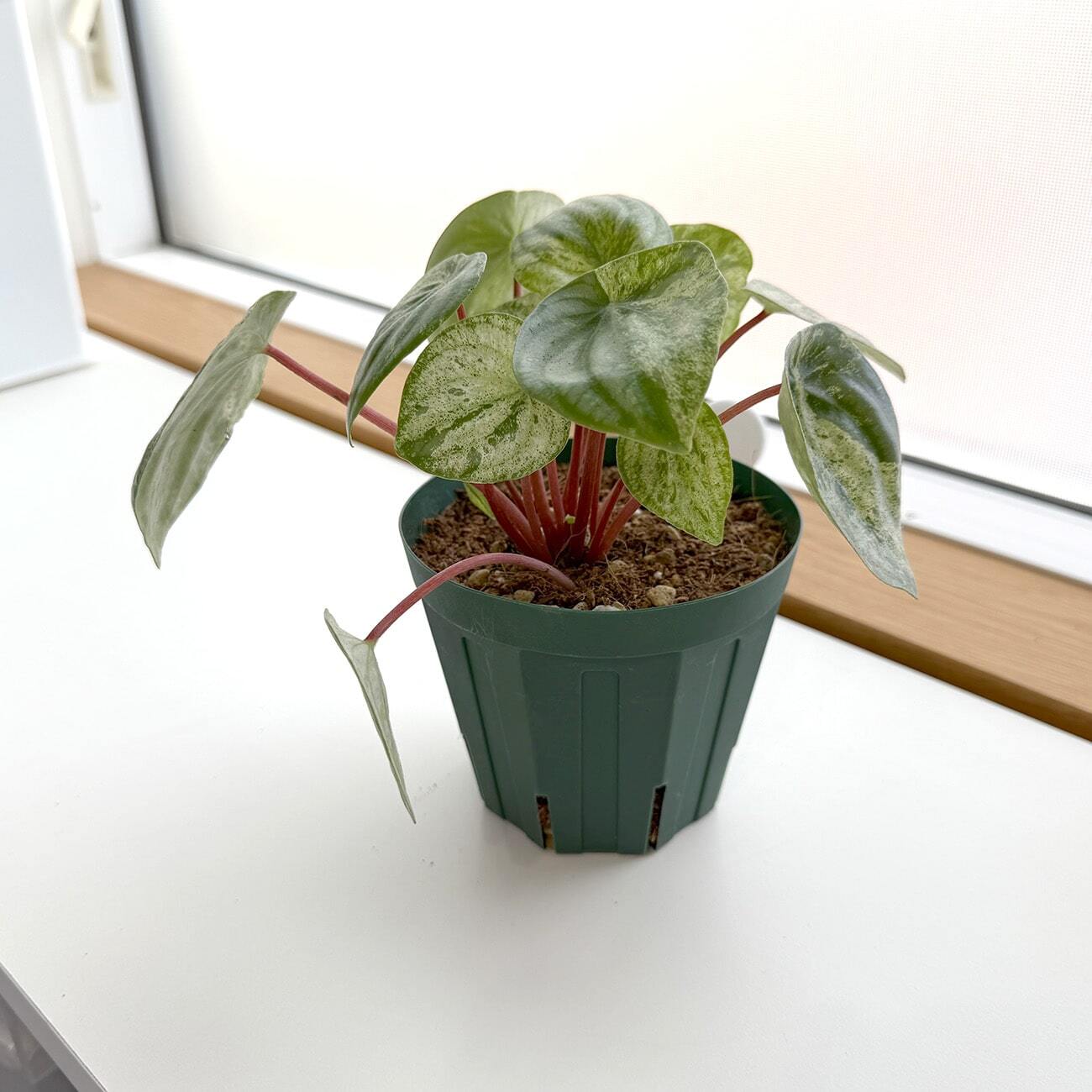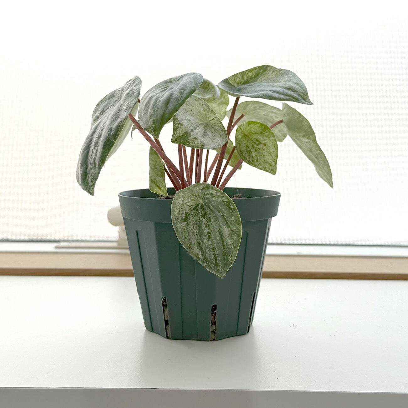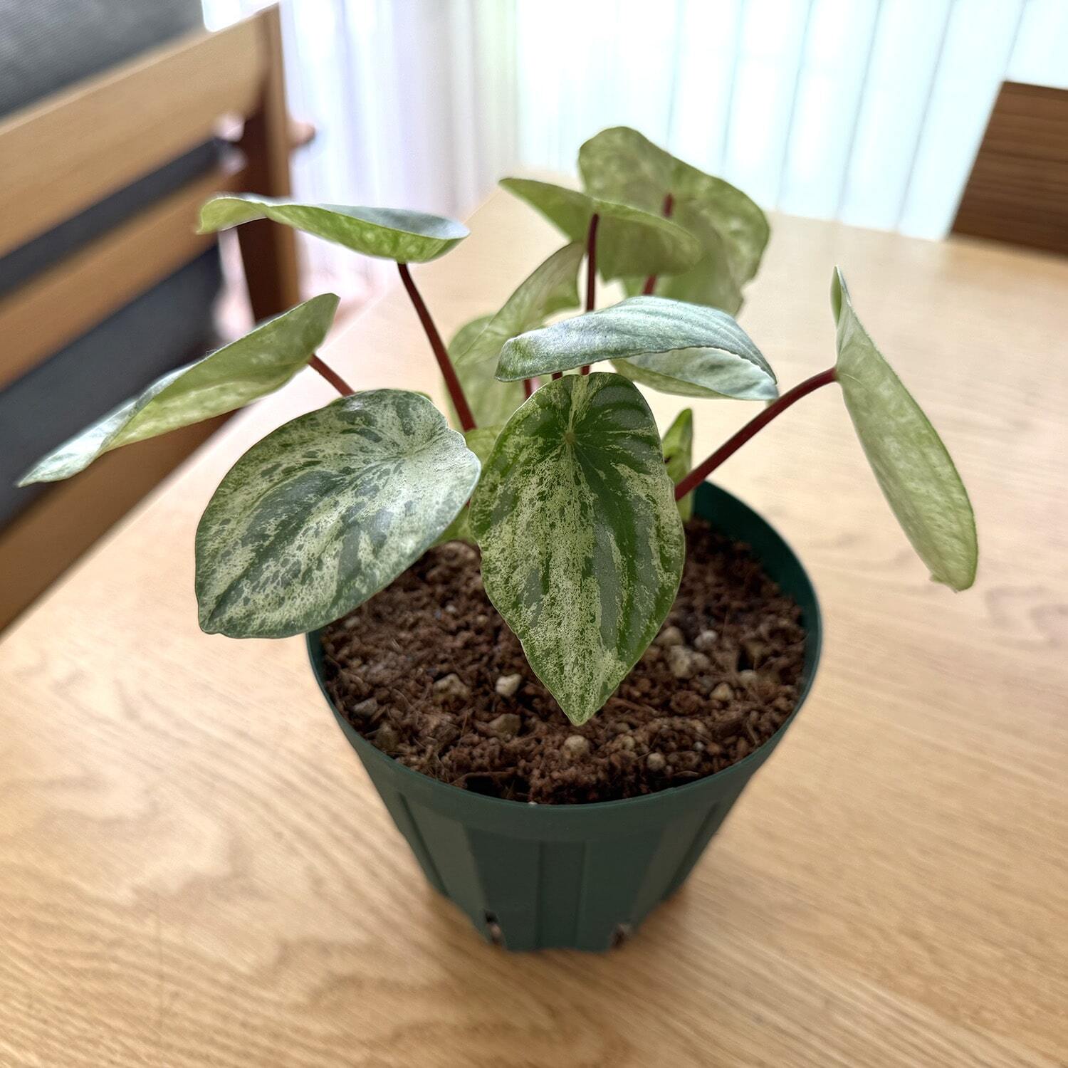 ペペロミアは乾燥に強い種なので、水遣りのあげすぎに気を付けて頂ければ比較的育てやすい品種です。斑が消えないようにある程度の明るさは必要です。