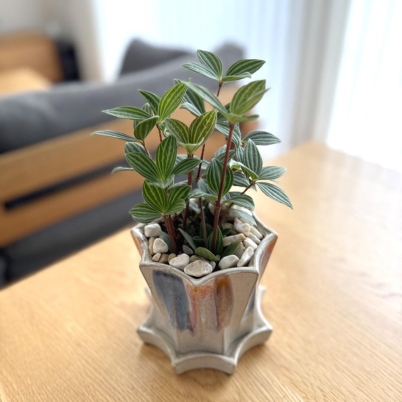 ペペロミアは乾燥に強い種なので、水遣りのあげすぎに気を付けて頂ければ比較的育てやすい品種です。窓から離れた場所に置くと葉が垂れてしまうので、窓際に置くと綺麗に上に伸びてくれます。