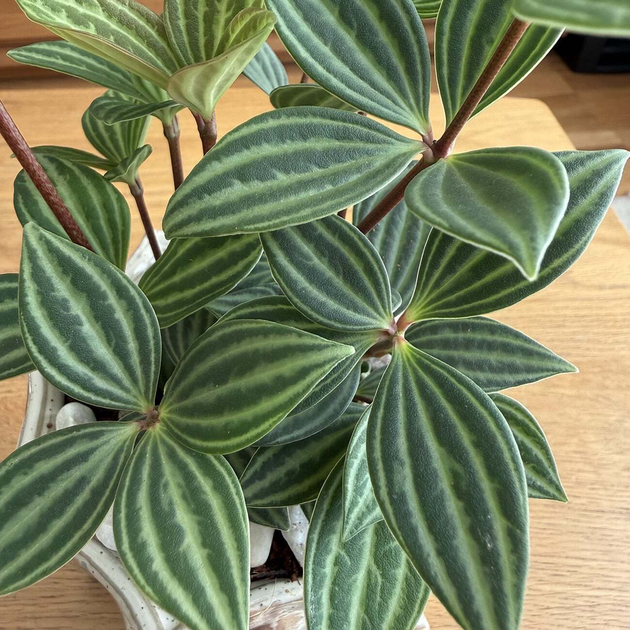 数多くあるペペロミアの品種の中でも上に伸びるタイプのプテオラータ。